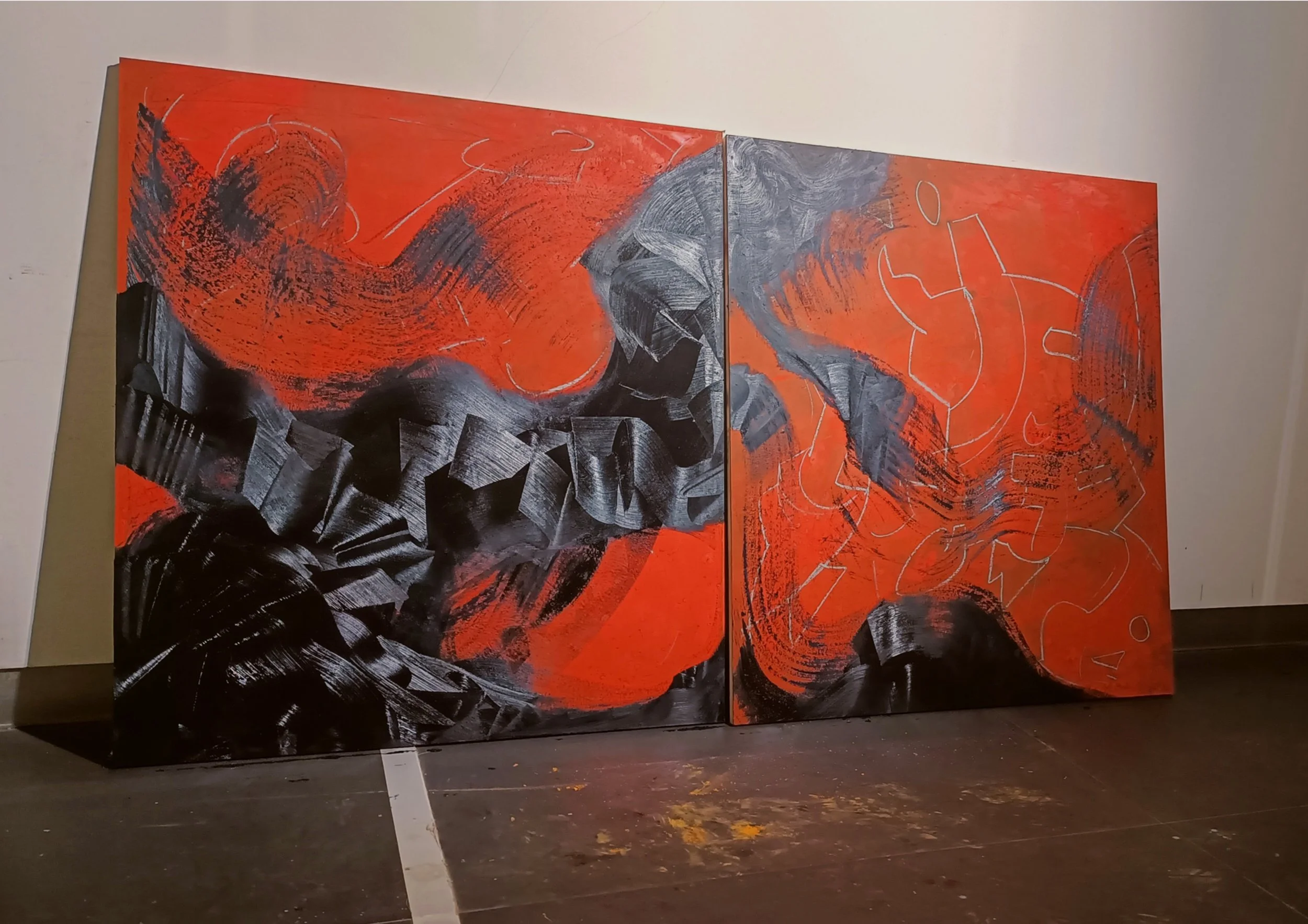Criação rítmica de pinturas e impressões de larga escala, a Óleo.